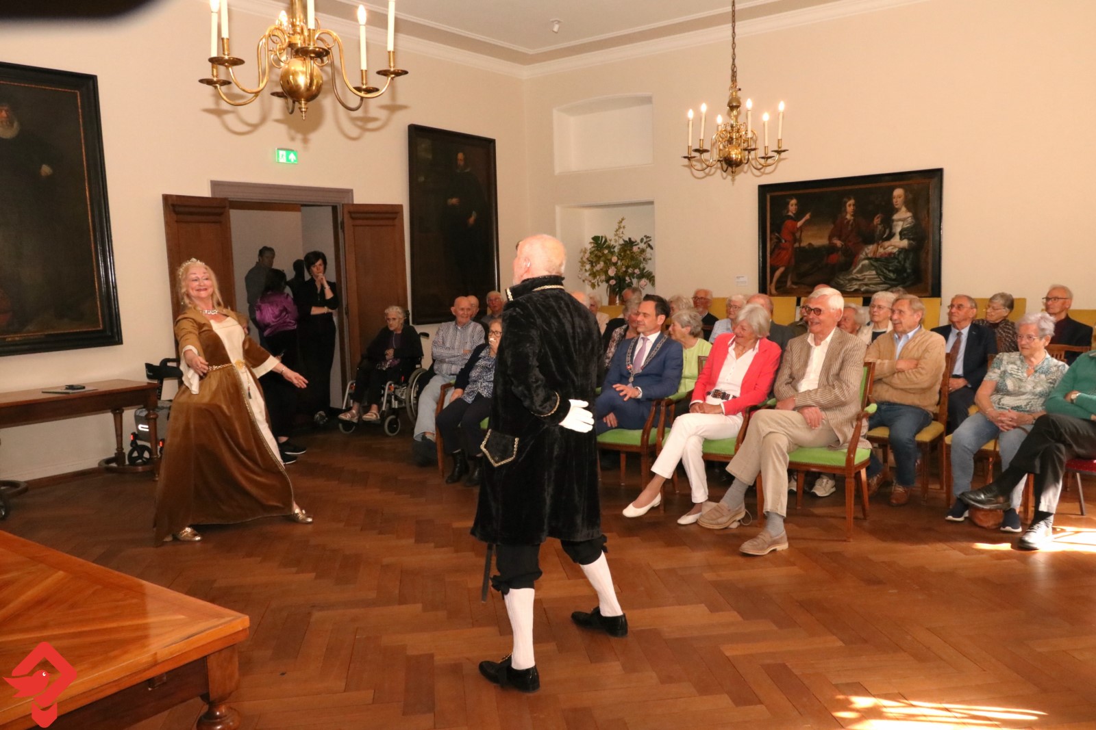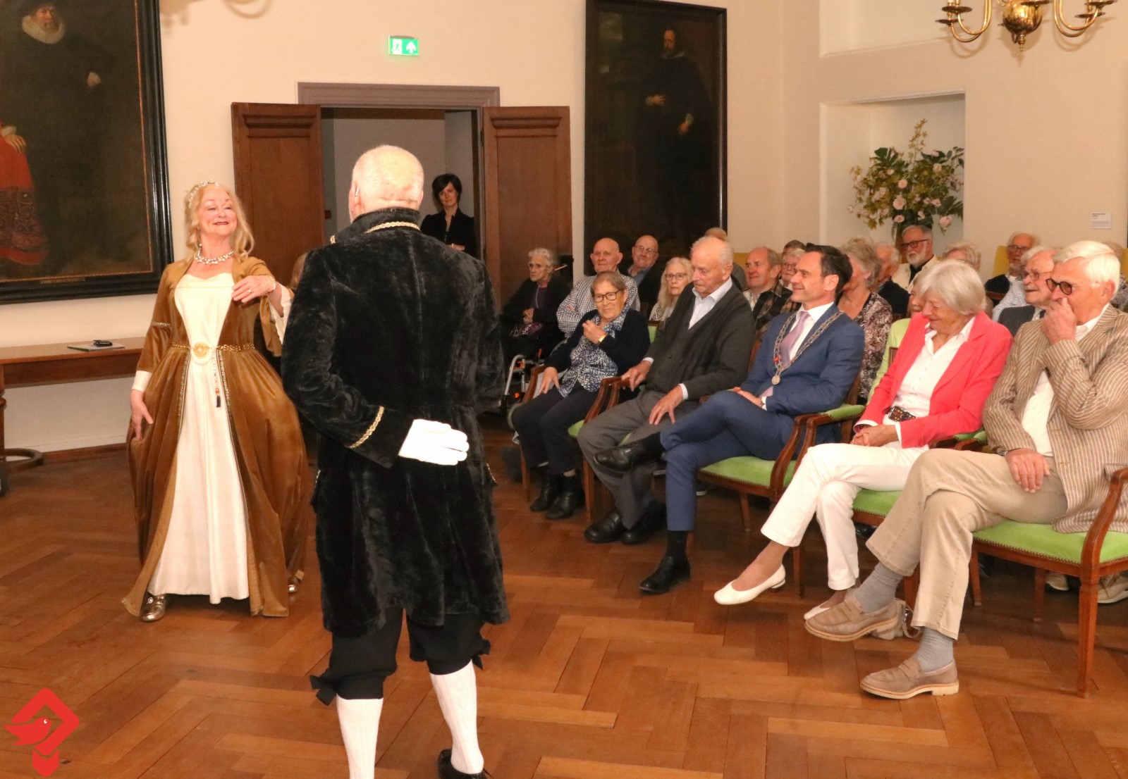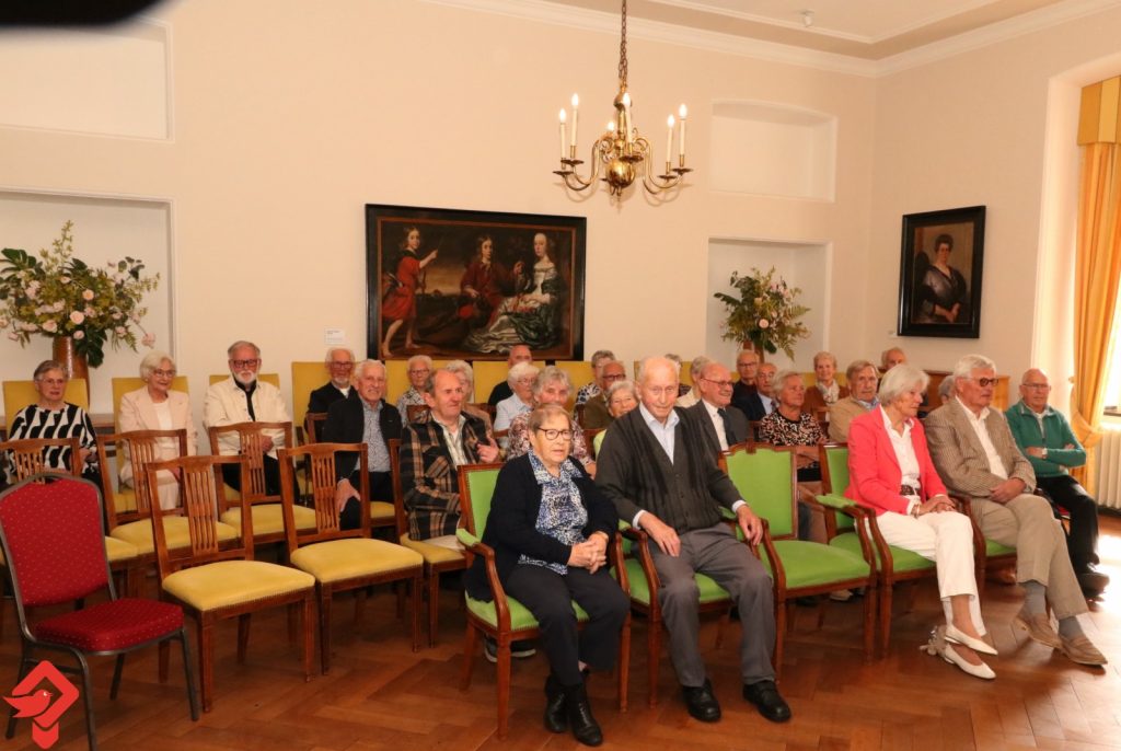 De traditionele ontvangst van al de aanwezige echtparen in het Kasteel, ging wederom op bijzondere wijze. Via de bekende rode loper, werden ze opgevangen door het echtpaar Joost van Cortenbach en zijn vrouw Catherina van Cortenbach- van Halewijn, van het Kasteel museum. Vervolgens werd er na de ontvangst binnen, met burgemeester Sjoerd Potters een fotosessie gemaakt, samen met de diamanten echtparen. Hierdoor hebben zij na afloop, allemaal nog een mooie terugblik, op dit bijzondere samen zijn. Zo’n gezamenlijk uitgebreide lunch, met al die andere diamanten echtparen tesamen, werd door iedereen heel gezellig gevonden en uitzonderlijk. In deze uitgebreide lunch en gesprekken met burgemeester Sjoerd Potters, werden door de echtparen, ook vele verhalen opgehaald van vroeger. Het is in ieder geval weer een bijzondere samenkomst geweest, die beslist voor herhaling vatbaar moet blijven voor de toekomst. Misschien is dit aantal genodigden, in de toekomst nog te overtreffen, je weet maar nooit
