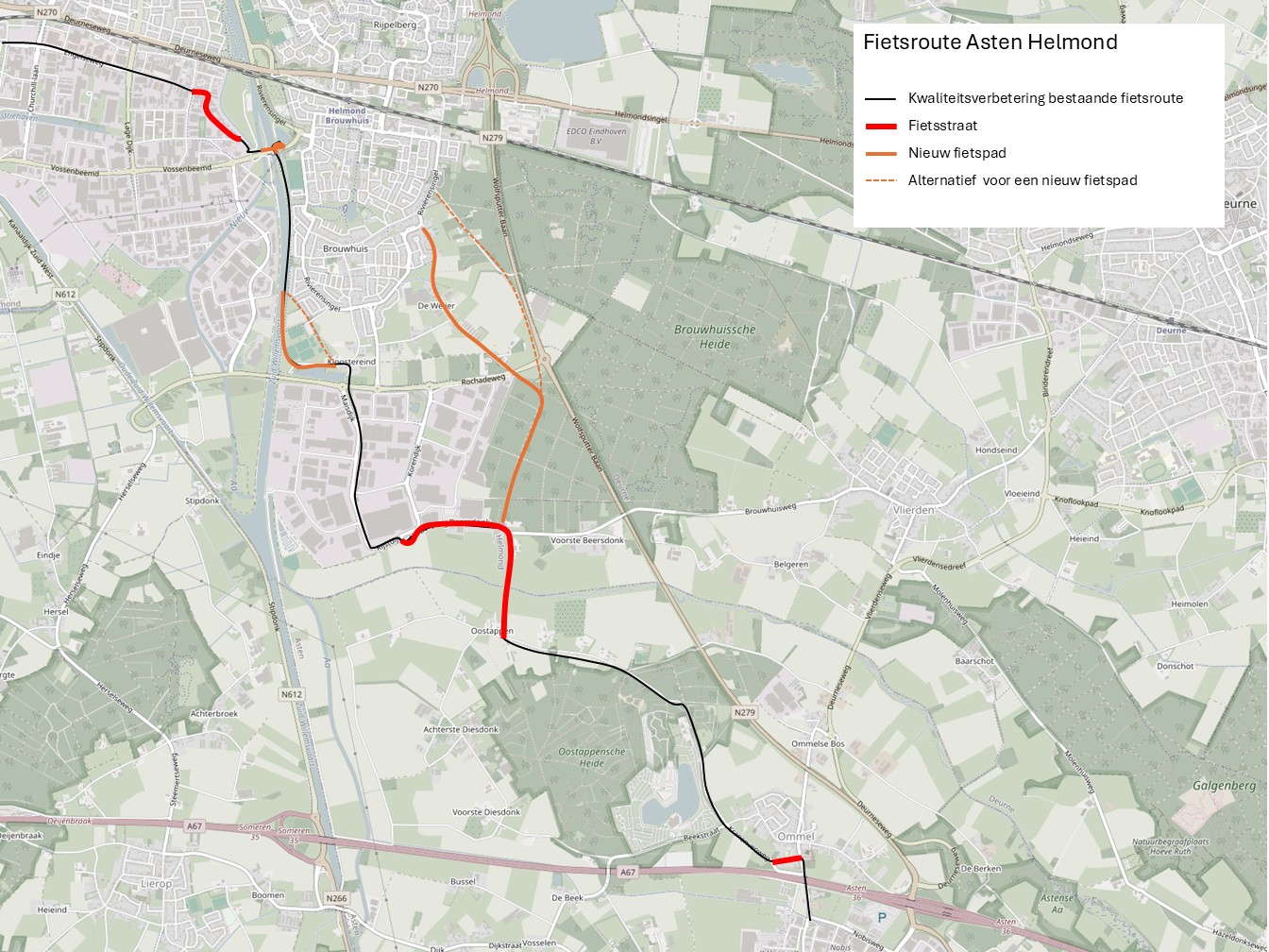 Uit onderzoek blijkt dat steeds meer inwoners (willen) gebruikmaken van de fietsroute tussen Asten en Helmond. De gemeenten zien hierin kansen voor een betere bereikbaarheid, een gezondere leefstijl en een prettigere leefomgeving. Daarom werken zij samen aan het verbeteren van de verbinding. In 2022 is, in overleg met vertegenwoordigers uit de lokale samenleving, een voorkeursroute vastgesteld die zo goed mogelijk aansluit bij de wensen van gebruikers.