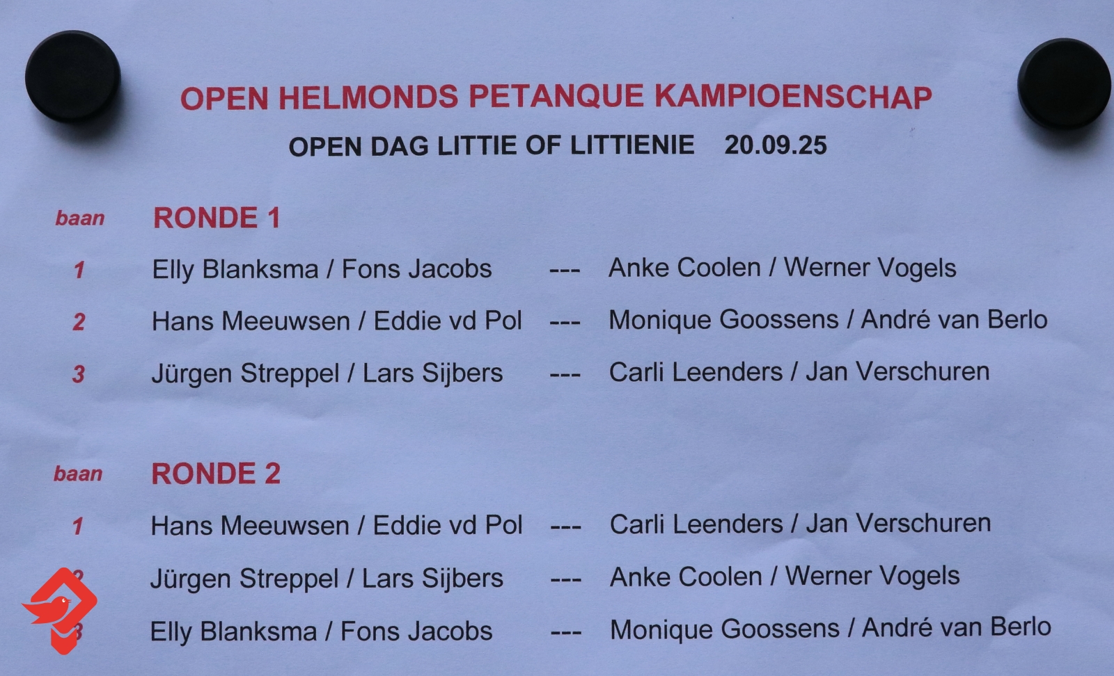 Onder grote belangstelling en met veel aanwezige pers vond dit weekend de finale plaats van de Open Helmondse Petanque Kampioenschappen op de banen van Petanquevereniging Littie of Littienie. Het toernooi, dat deel uitmaakte van de feestelijke open dag van Campus De Braak, trok niet alleen fanatieke petanquers, maar ook prominente Helmonders.